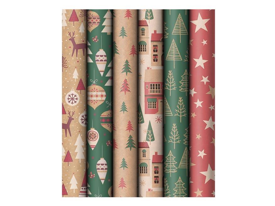 V jednoduchosti je krása – a tento vánoční kraftový balicí papír to dokonale potvrzuje. Jeho přírodní vzhled v kombinaci s jemnými motivy stromků, hvězd, domků a jelenů v tlumených tónech červené, zelené a béžové vytváří harmonické a elegantní balení pro každý dárek. Zvolit můžete z šesti originálních vánočních motivů. Kraftový papír je kvalitní, příjemný na dotek a v kombinaci s jutovou stuhou nebo provázkem vytvoří dokonalý sváteční efekt.
