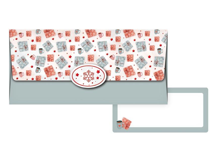 Dárková obálka na peníze s vánočním motivem a uzavíratelnou klopou. Darujte svým blízkým dárek k Vánocům v podobě obálky na peníze. Do obálky lze vložit peníze nebo dárkový poukaz. Uvnitř je kartička bez textu, na kterou můžete napsat věnování. BARVA: šedá/bílá MOTIV: dárky