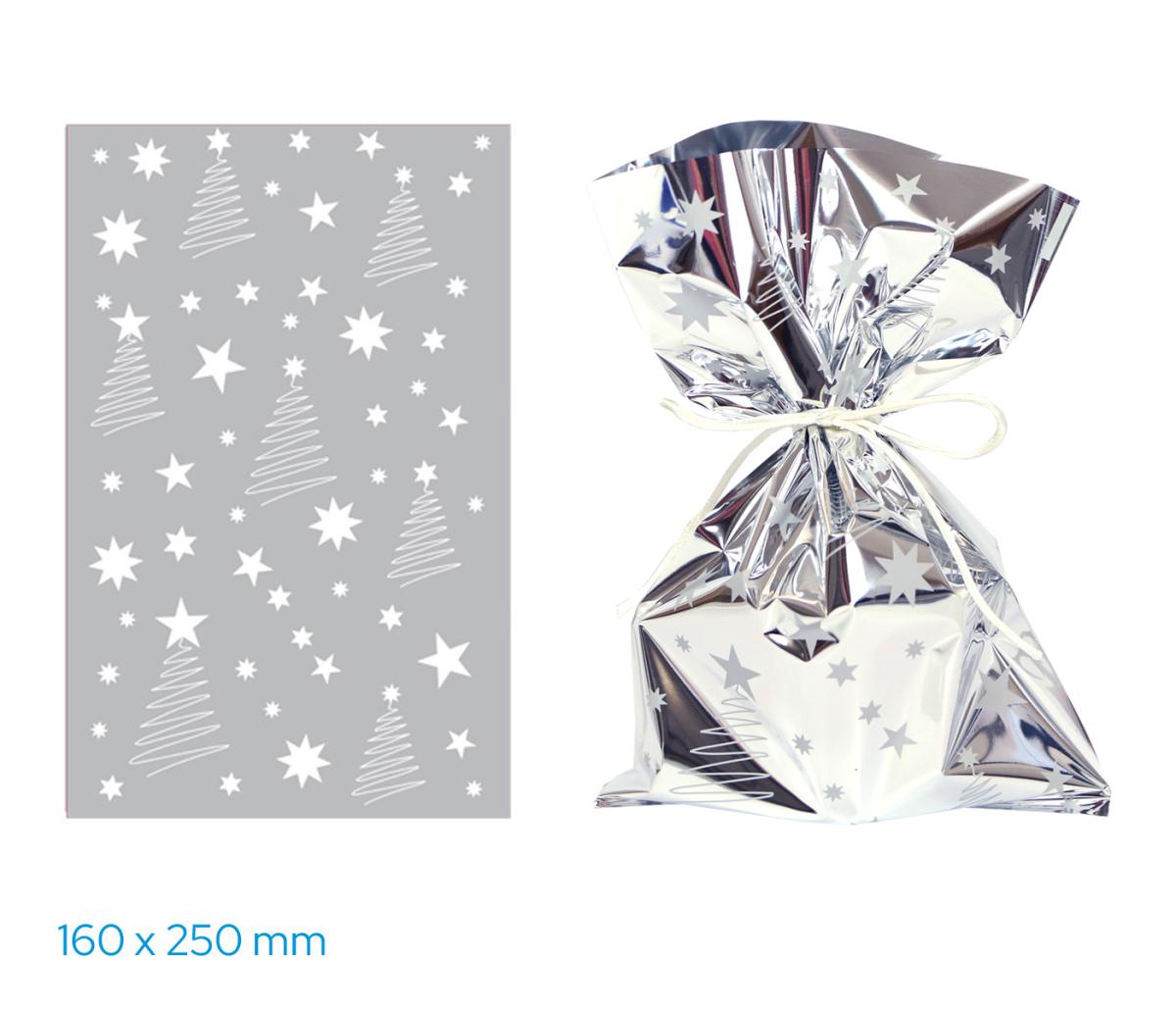 vánoční celofánový sáček stříbrný, oboustranný potisk, materiál: BOPP, rozměr: 16 x 25cm