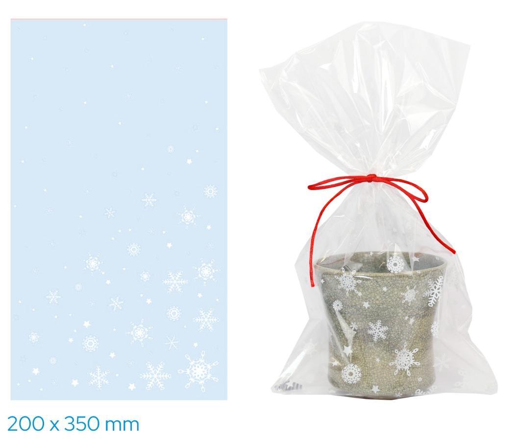 Vánoční celofánový sáček - transparentní vločky a hvězdičky / 20 x 35 cm