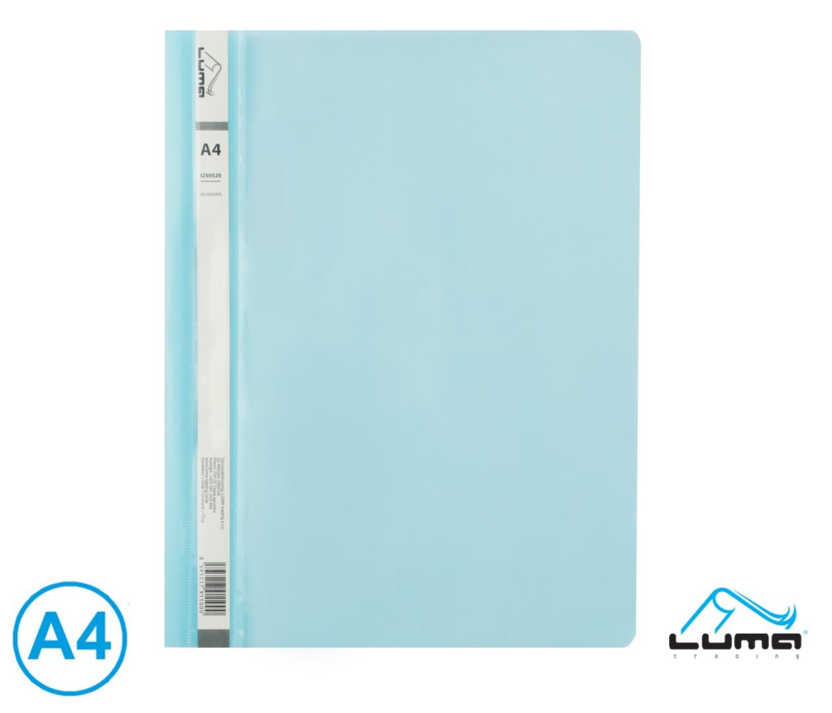 formát A4, plochý kovový mechanismus, kapacita, počet listů 130, rozměr 308 х 235 mm, materiál polypropylen, tloušťka 0,2 mm