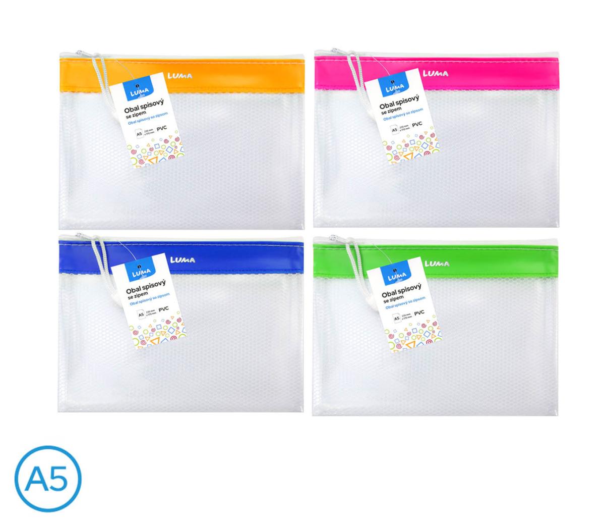 obal spisový se zipem síťovaný, pevný PVC materiál, zavírání na zip