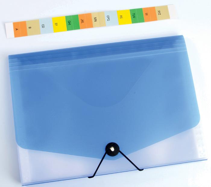 spisovka se 13 přihrádkami na dokumenty, zavírání na klopu, průhledný polypropylen, registr, formát A4