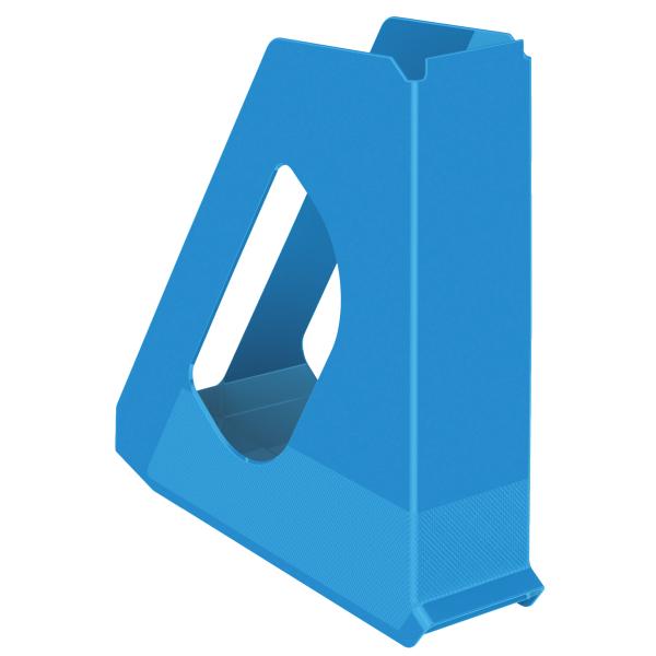 moderní stojan na časopisy pro uložení dokumentů formátu A4 na pracovním stole s unikátním embosovaným povrchem a ve svěžích barvách řady Esselte VIVIDA, snížený hřbet pro jasnou identifikaci obsahu z přední strany, integrovaný úchyt pro snadné vytažení z police