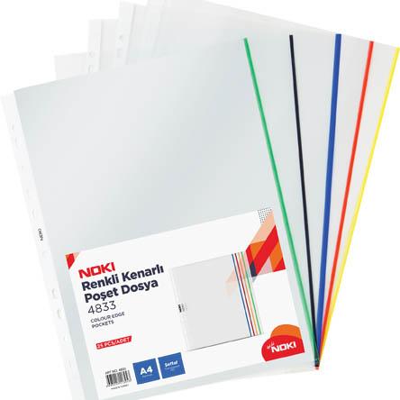 Závěsné obaly A4 Noki extra silný - čirý s barevným okrajem / 25 ks