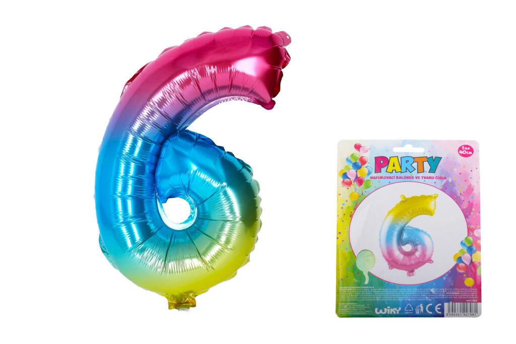 Duhový nafukovací balónek ve tvaru čísla 6 je vhodný jako doplněk na narozeninovou párty! Velikost: 40 cm