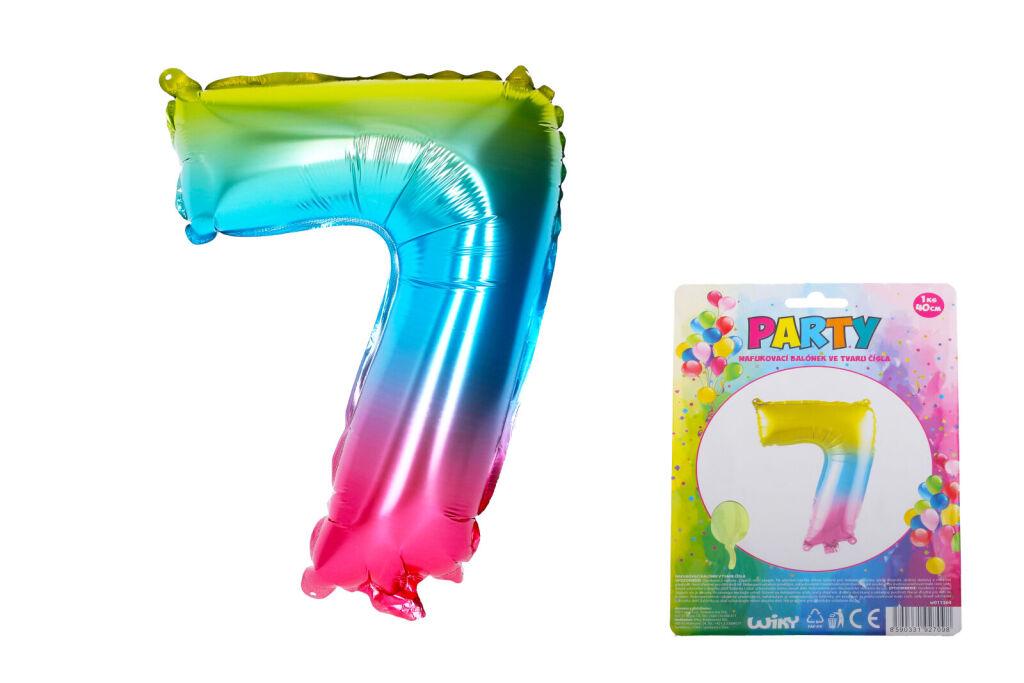 Duhový nafukovací balónek ve tvaru čísla 7 je vhodný jako doplněk na narozeninovou párty! Velikost: 40 cm
