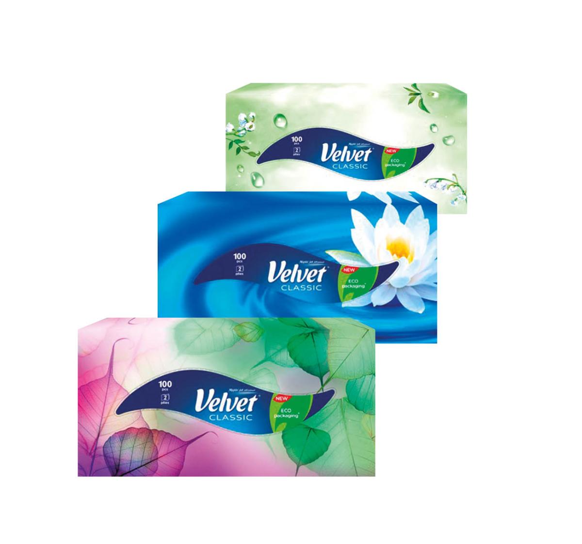 Kapesníčky papírové kosmetické Velvet Classic - dvouvrstvé / 100 ks