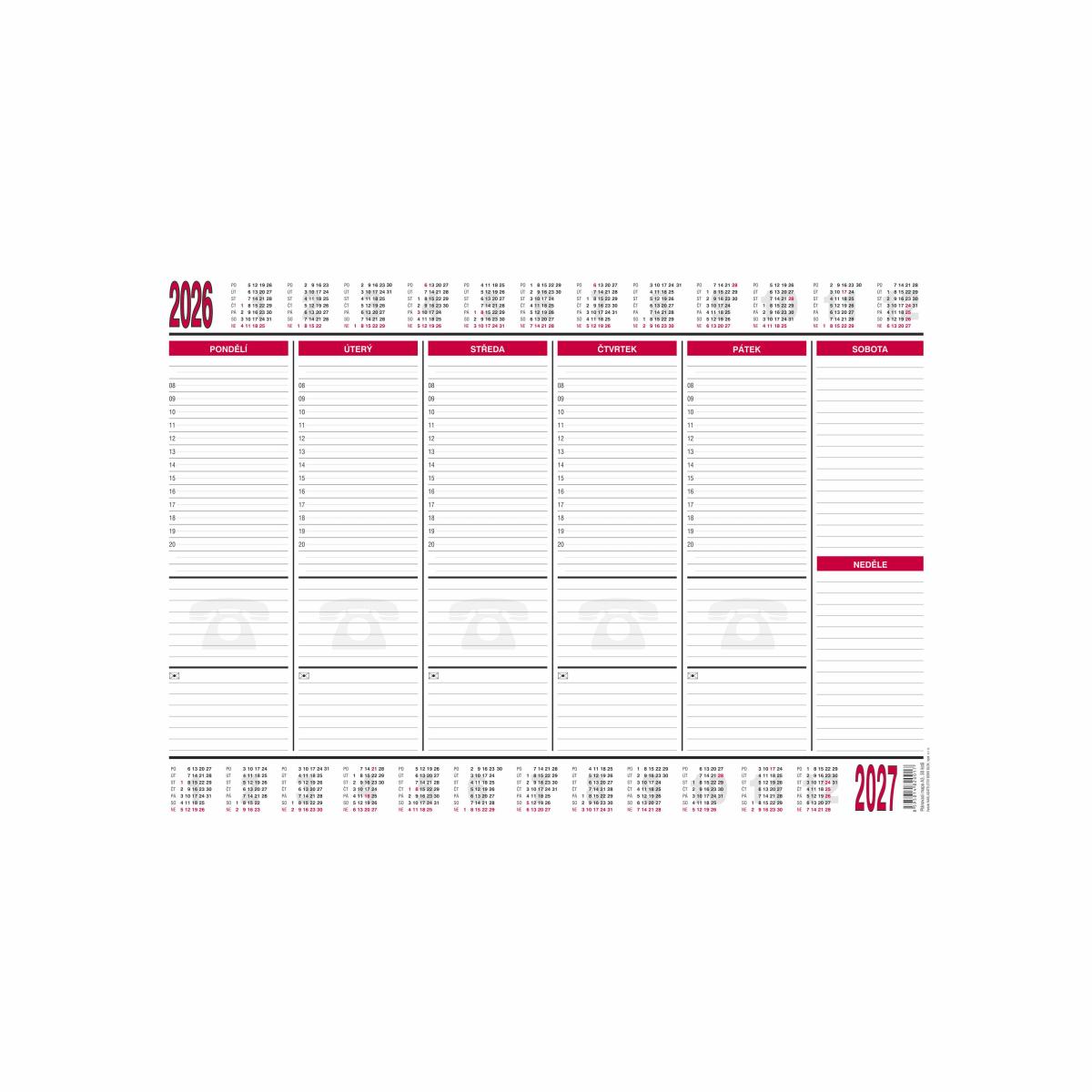 papírová podložka pro psaní poznámek, týdenní (bez kalendária), lepená na spodní straně, 30 listů