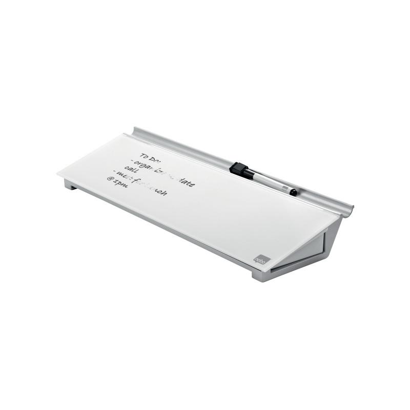 Skleněná stolní podložka je unikátní doplněk na stůl pro psaní poznámek a vzkazů. Bezrámečkový design a skleněný povrch tabule nabízí nejvyšší odolnost proti šmouhám od inkoustu a škrábancům. Psací plocha je vždy po ruce a psaní poznámek je tak velmi pohodlné. Výrobek se perfektně hodí do prostoru za klávesnicí. Skrytý úložný prostor uvnitř vám pomůže si udržet čistý pracovní stůl. Dodáváno s minipopisovačem Nobo s houbičkou na víčku.