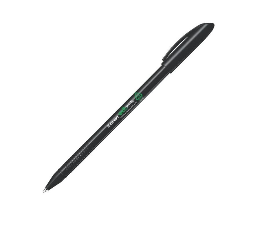 jednorázové, ekologické kuličkové pero LUXOR ECO, s průměrem hrotu 1 mm, s plastovým tělem s víčkem a klipem, 70 % použitého plastu je z recyklovaného polypropylenu, certifikováno Global Recycled Standard pro udržitelnou výrobu