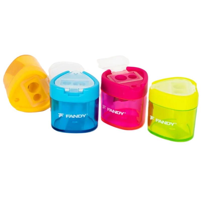 plastové ořezávátko pro ořezávání tenkých (8 mm) i silných (11 mm) tužek se zásobníkem na odpad a víčkem, barevný mix