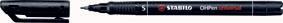 STABILO OHPen universal, popisovač pro každého, píše téměř na všechny hladké povrchy, permanentní inkoust, neklouzavá úchopová zóna a praktický klips, ochrana proti vysychání, vydrží až 72 hodin bez víčka, šířka stopy 0,4 mm