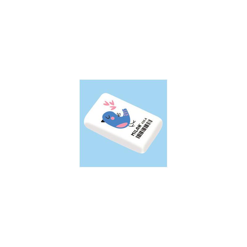 elastická pryž ze syntetického kaučuku, v bílé barvě s potiskem, vhodné použití na většinu povrchů, skvěle odstraňuje stopy od různých tvrdostí tuh, rozměr 3,9 x 2,3 x 0,9 cm
