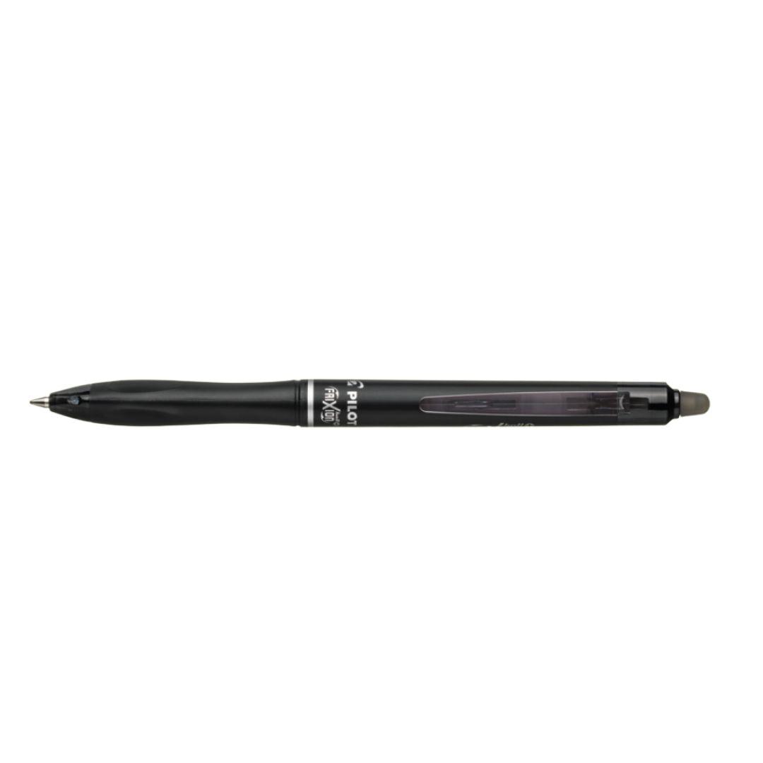 oblíbené gumovací pero v novém provedení, černé, hladké tělo, tichý stiskací mechanismus, trojhranná úchopová zóna pro ještě větší pohodlí, šířka stopy 0,35 mm, průměr hrotu 0,7 mm, vyrobeno z minimálně 82 % recyklovaných plastů (kromě vyměnitelných částí), náhradní náplň FriXion 0,7 mm