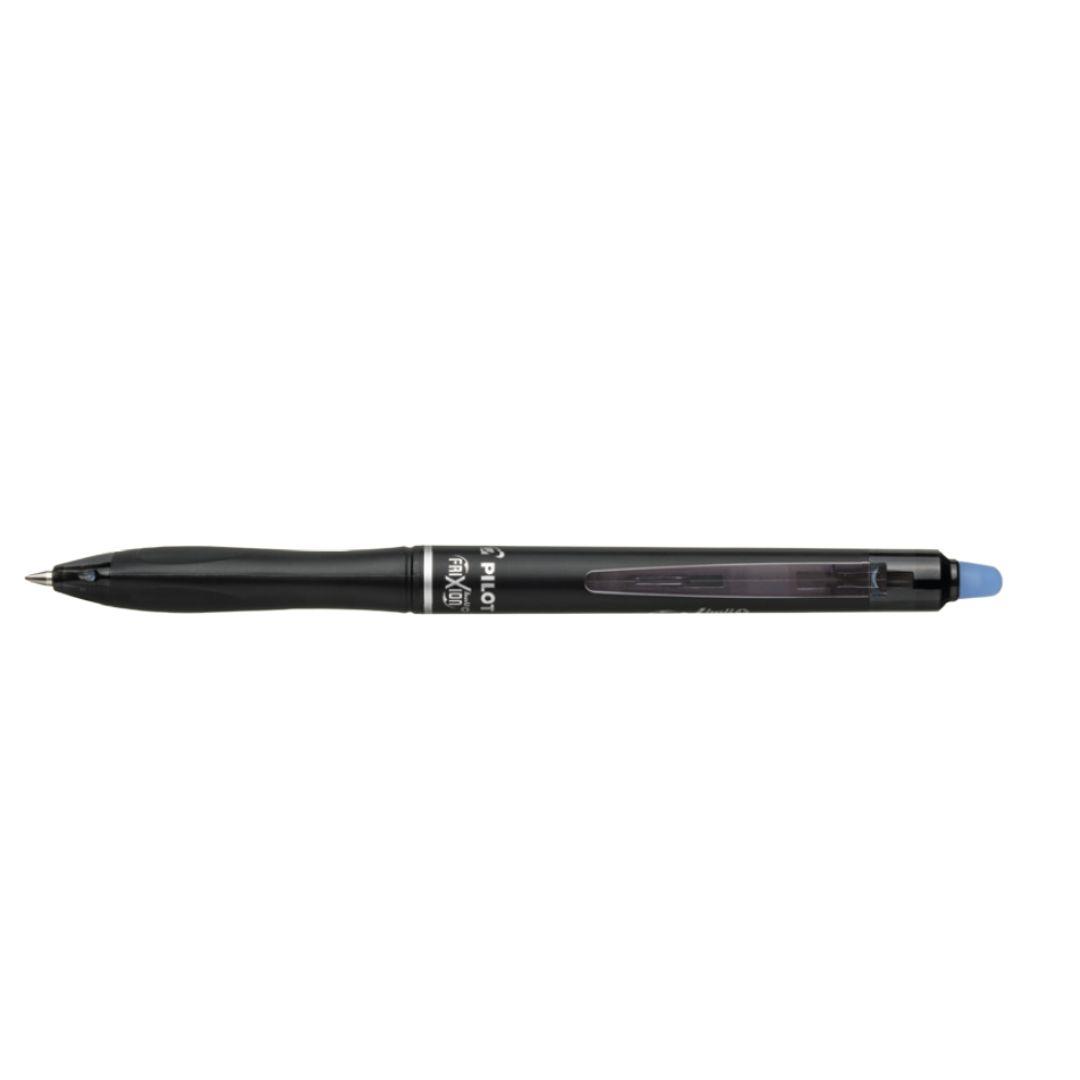 oblíbené gumovací pero v novém provedení, černé, hladké tělo, tichý stiskací mechanismus, trojhranná úchopová zóna pro ještě větší pohodlí, šířka stopy 0,35 mm, průměr hrotu 0,7 mm, vyrobeno z minimálně 82 % recyklovaných plastů (kromě vyměnitelných částí), náhradní náplň FriXion 0,7 mm
