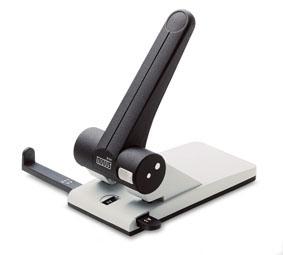 děrovačka se speciálním systémem přenosu síly pro snadné děrování, spolehlivě nastavitelný příložník s dobře čitelnou indikací formátu, dělené výklopné dno z měkké pryže usnadňuje manipulaci s odpadem, celokovový výrobek ze zinkového tlakového odlitku, páka s aretačním tlačítkem pro úsporu místa při ukládání, kapacita 65 listů, záruka 10 let