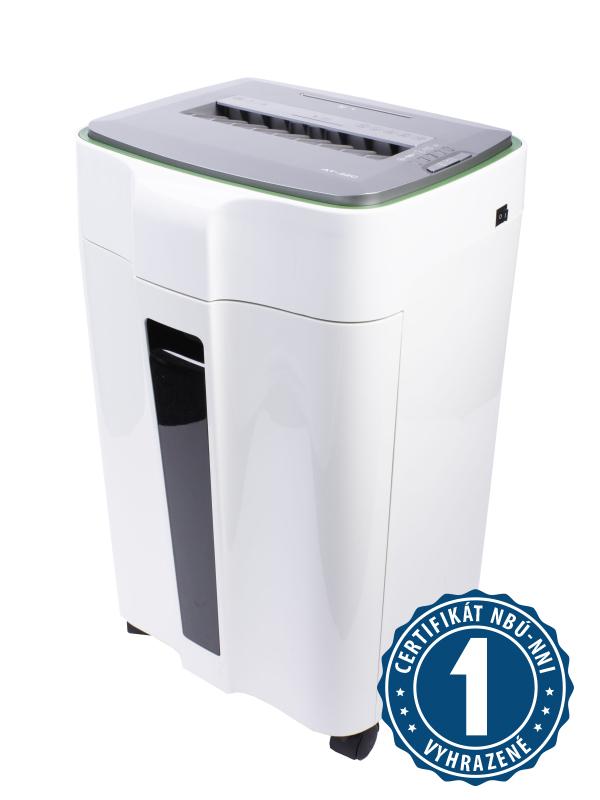 inovativní skartovací stroje do kanceláře s odděleným vstupem na papír a CD ve velmi dobrém řemeslném zpracování dle evropských parametrů, separovaný odpad na papír a CD, výsuvný koš pro snadné vyprazdňování, dvojitá pojistka proti přehřátí, automatický start / stop, zpětný chod, kompletní elektronická výbava – jištění otevřených dveří, plného koše, přetížení okamžitým zastavením stroje, nový typ motoru z velmi tichým chodem, pojezdová kolečka, objem koše: 30 l, AT-22C - velikost řezu 4 x 20 mm, stupeň utajení 3, kapacita 16 listů A4/70g, šířka vstupu 230 mm, rozměry 600 x 372 x 322 mm, hmotnost 18 kg , certifikát NBÚ – důvěrné, AT-22MC - velikost řezu 2 x 10 mm, stupeň utajení 4, kapacita 10 listů A4/70g, šířka vstupu 230 mm, rozměry 600 x 372 x 322 mm, hmotnost 18 kg , certifikát NBÚ – tajné