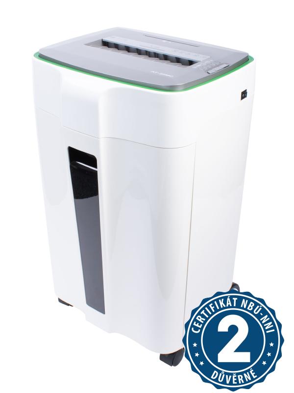 inovativní skartovací stroje do kanceláře s odděleným vstupem na papír a CD ve velmi dobrém řemeslném zpracování dle evropských parametrů, separovaný odpad na papír a CD, výsuvný koš pro snadné vyprazdňování, dvojitá pojistka proti přehřátí, automatický start / stop, zpětný chod, kompletní elektronická výbava – jištění otevřených dveří, plného koše, přetížení okamžitým zastavením stroje, nový typ motoru z velmi tichým chodem, pojezdová kolečka, objem koše: 30 l, AT-22C - velikost řezu 4 x 20 mm, stupeň utajení 3, kapacita 16 listů A4/70g, šířka vstupu 230 mm, rozměry 600 x 372 x 322 mm, hmotnost 18 kg , certifikát NBÚ – důvěrné, AT-22MC - velikost řezu 2 x 10 mm, stupeň utajení 4, kapacita 10 listů A4/70g, šířka vstupu 230 mm, rozměry 600 x 372 x 322 mm, hmotnost 18 kg , certifikát NBÚ – tajné