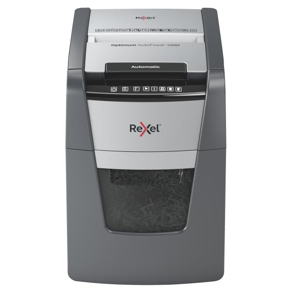 Skartovačka Optimum AutoFeed 100M automaticky skartuje až 100 listů papíru A4 (80 g /m2) mikro řezem P-5 (2x15mm). Tato skartovačka s automatickým podáváním je sofistikovaný kancelářský skartovač s výsuvným košem o objemu 34L. Není třeba ručně podávat papír nebo nejdříve odstraňovat svorky a kancelářské sponky, tento automatický skartovač papíru udělá vše za vás.