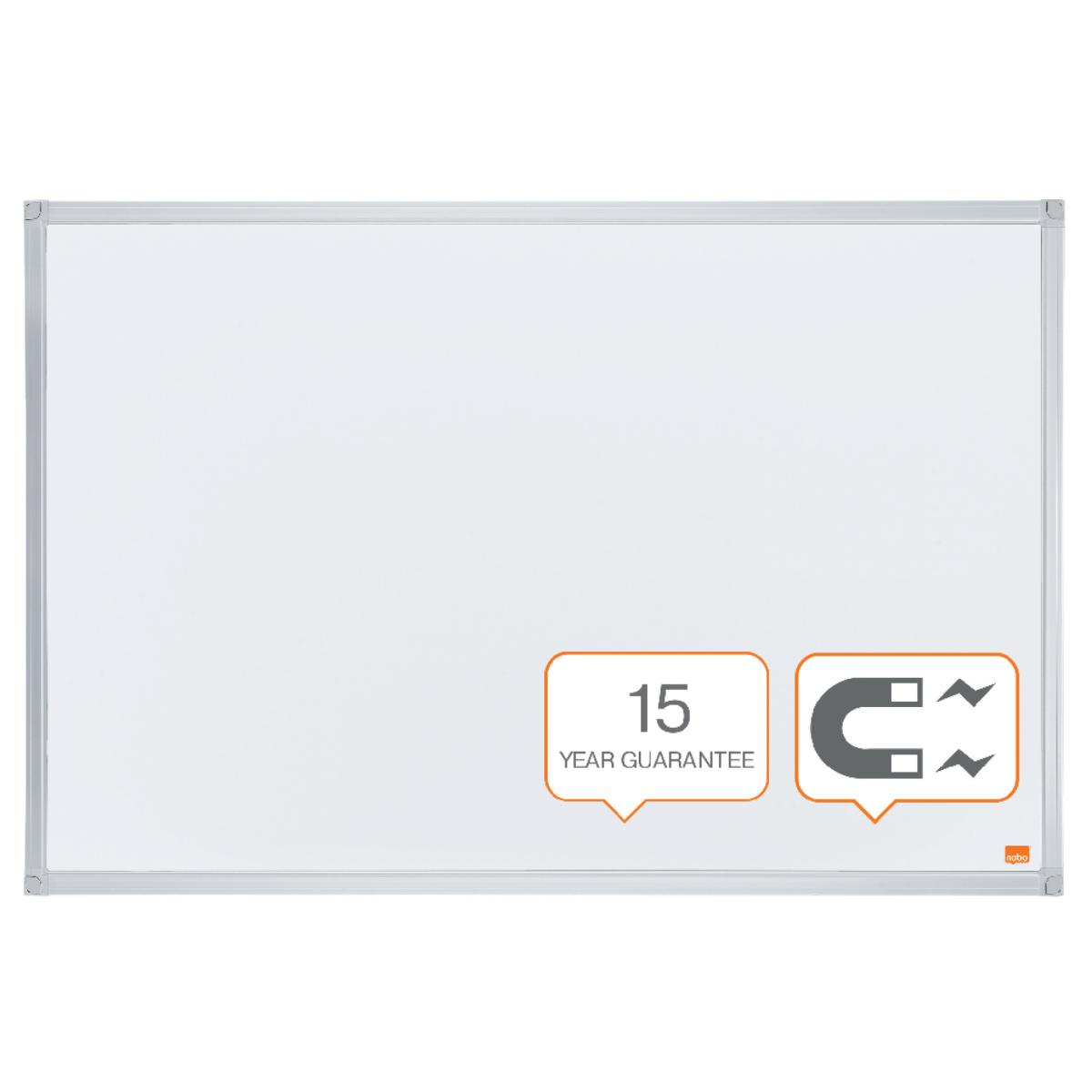 magnetická tabule s bílým lakovaným povrchem, pro psaní popisovačem určeným na bílé tabule, hliníkový rám, držák na psací potřeby, v balení montážní sada, záruka 15 let na povrch