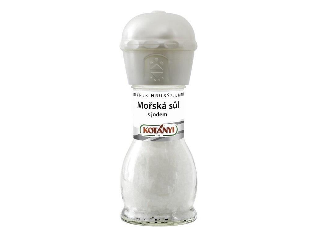 Jedlá sůl s jodem, mořská. Mořská voda je odpařovaná sluncem z mělkých bazénků.