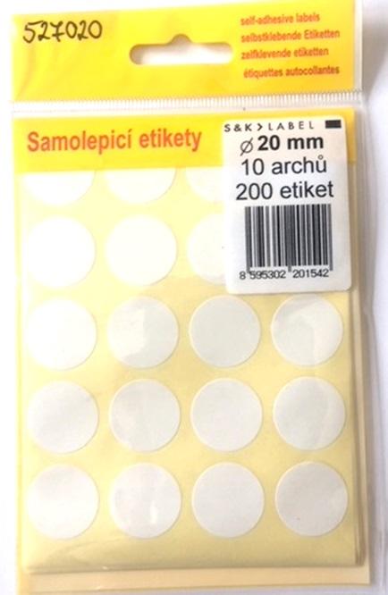 Samolepicí etikety v sáčku - kulaté prům.20mm / 200 etiket