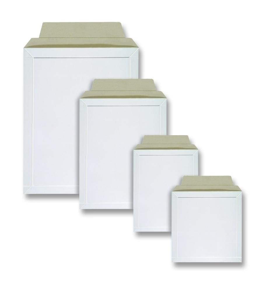 Prostorová obálka z pevné lepenky, zabrání pomačkání katalogů, kalendářů či dalších materiálů. Horní strana bílá-vnitřní šedá.