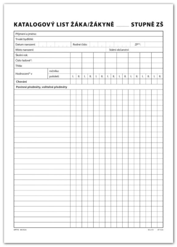 Katalogový list žáka univerzální pro 1. nebo 2. stupeň A4