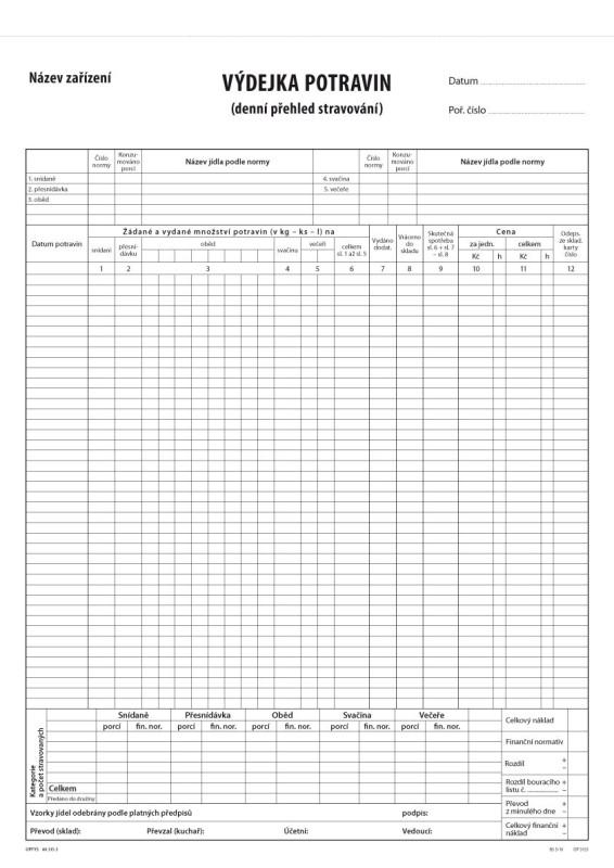 Výdejky potravin a denní přehled stravování A3 / 130 listů