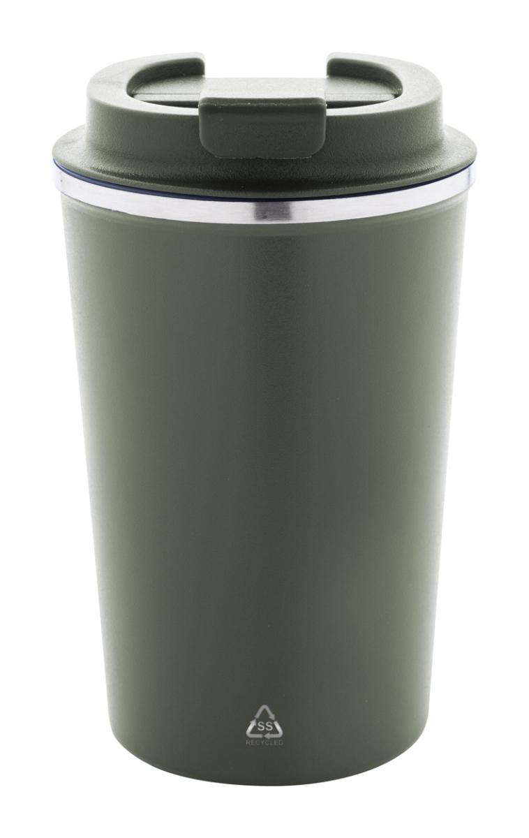 Dvoustěnný termo hrnek z recyklované nerezové oceli s víčkem na pití z PP. 350 ml.