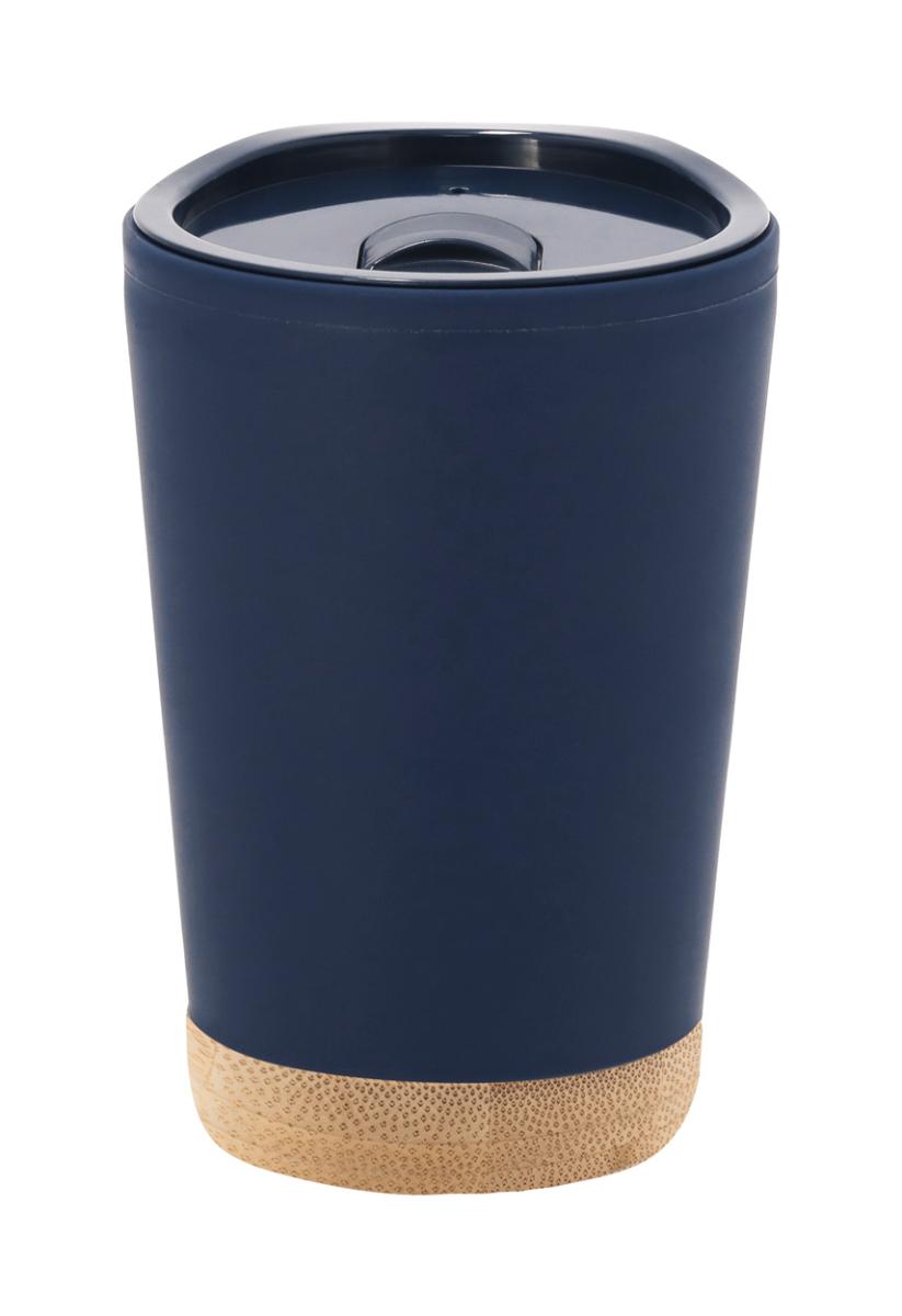 Dvoustěnný termo hrnek izolovaný PP plastem s víčkem na pití a bambusovým dnem, 260 ml.