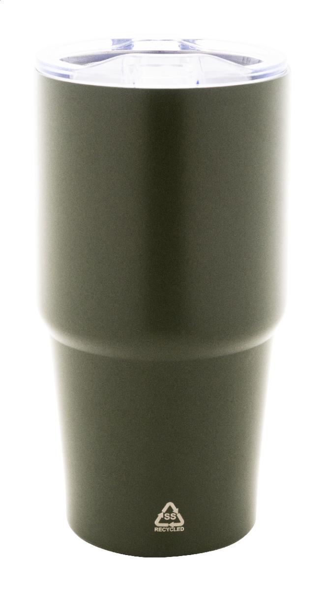 Dvoustěnný vakuově izolovaný termohrnek z recyklované nerezové oceli s víčkem z polystyrenového plastu. 600 ml.