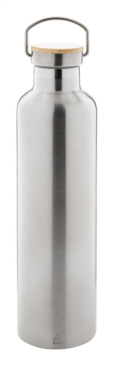 Dvoustěnná vakuově izolovaná láhev z recyklované nerezové oceli s bambusovým víčkem, 1000 ml.