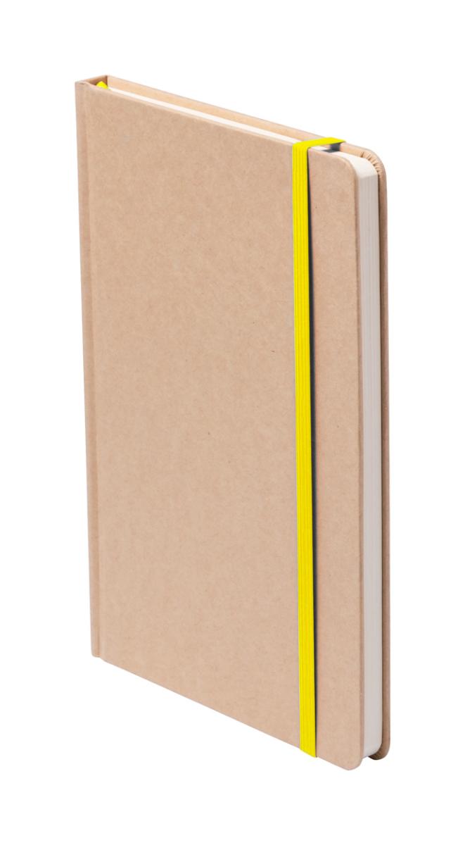 Blok s deskami z lepenky, se 100 čistými listy, barevnou záložkou a gumičkou.