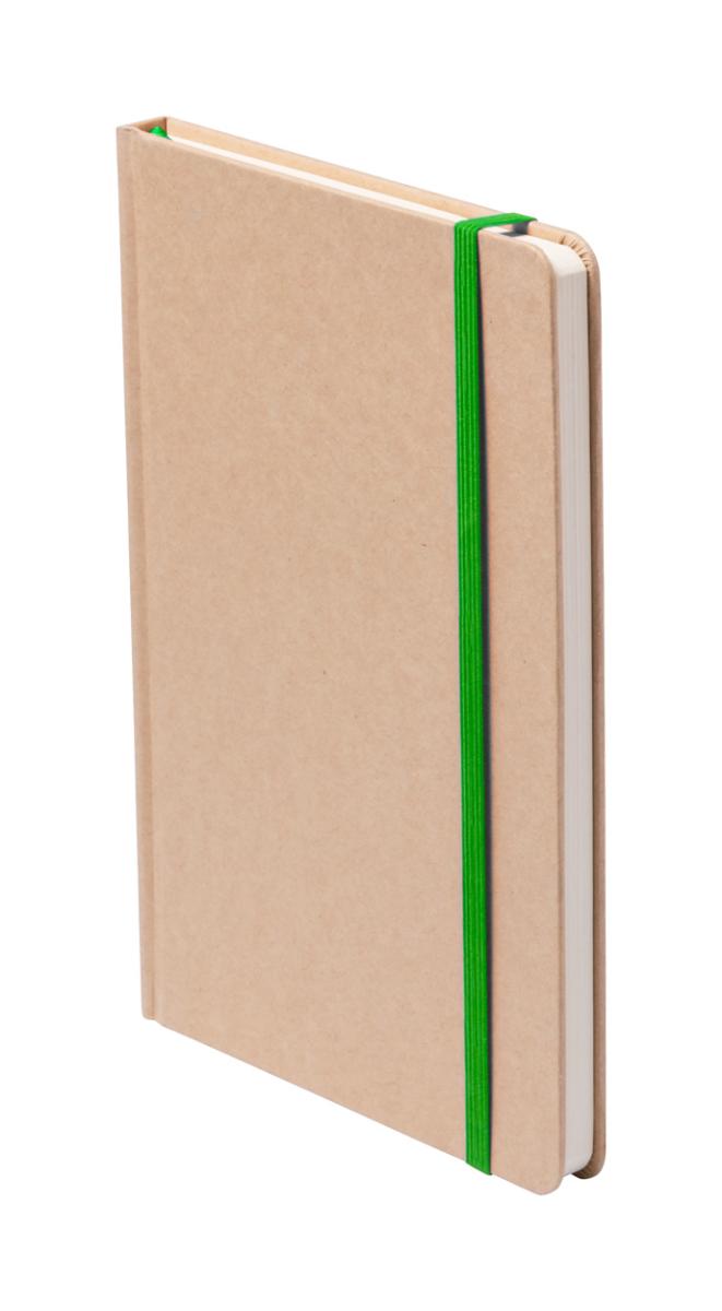 Blok s deskami z lepenky, se 100 čistými listy, barevnou záložkou a gumičkou.