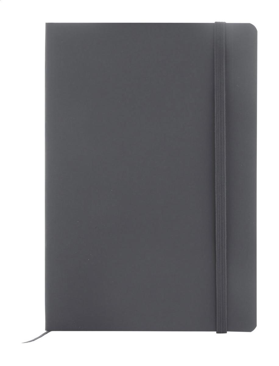 Blok A5 z recyklované PU kůže s měkkou vazbou s 80 linkovanými listy z recyklovaného papíru. Se záložkou v odpovídající barvě a gumičkou.