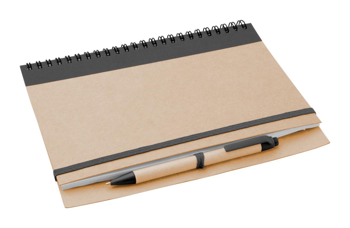 Nelinkovaný blok z recyklovaného papíru, se 60 listy a s papírovým kuličkovým perem.