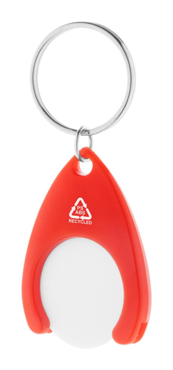 Přívěšek na klíče z recyklovaného ABS plastu s mincí do nákupního vozíku a kovovým kroužkem. Velikost mince: ø24×2 mm.