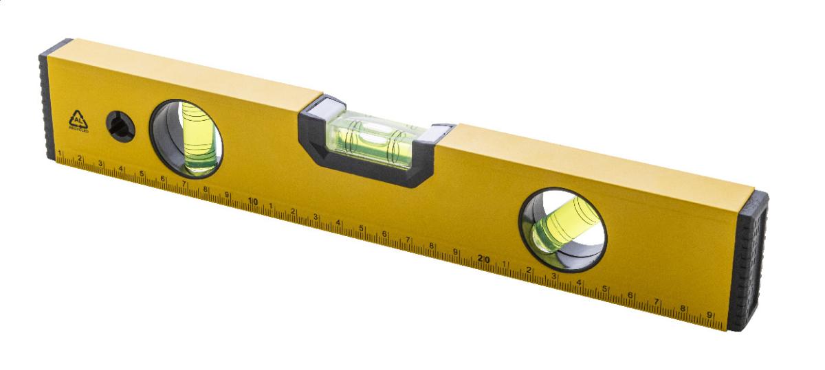 Magnetická vodováha z recyklovaného hliníku se třemi vodováhami (horizontální, vertikální a 45°) a 30cm pravítkem.