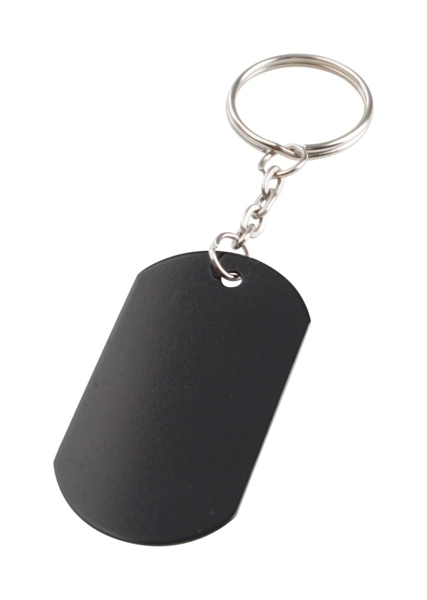 Hliníkový přívěšek na klíče s kovovým kroužkem.