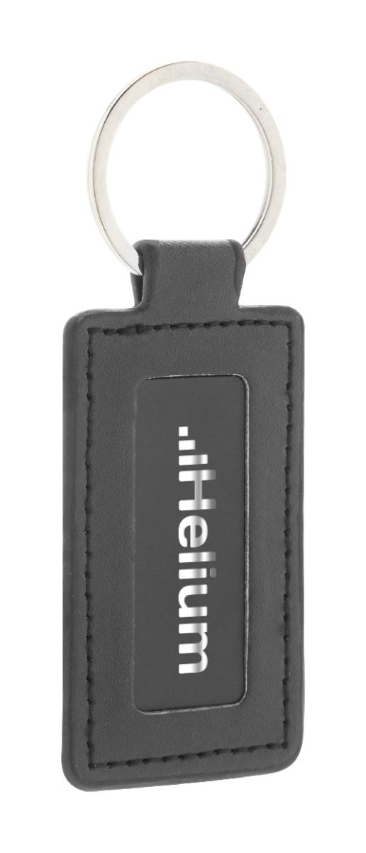 Obdélníkový přívěsek na klíče z recyklované PU kůže s kovovým kroužkem a nerezovou destičkou s logem a pogumovanou úpravou. Se speciálním povrchem pro zrcadlové laserové gravírování.
