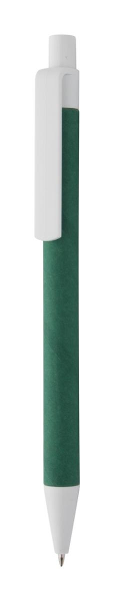 Kuličkové pero vyrobené z recyklovaného papíru a bílého plastu, s modrou náplní.