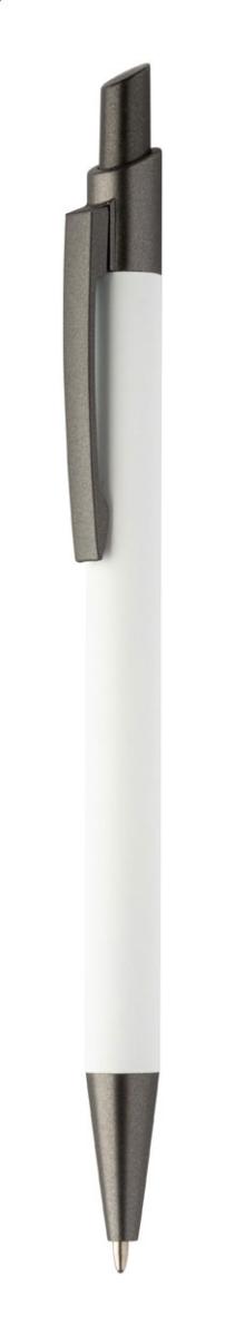 Kuličkové pero z recyklovaného hliníku s pogumovaným tělem a kovovými částmi. S modrou náplní.