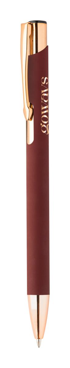 Kuličkové pero z recyklovaného hliníku s pogumovaným povrchem a detaily z růžového zlata. Se speciální povrchovou úpravou pro zrcadlové laserové gravírování v barvě růžového zlata. S modrou náplní.