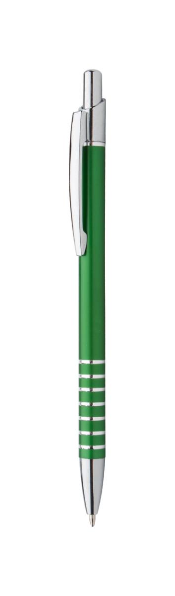 Hliníkové kuličkové pero s kovovým klipem a chromovanou špičkou a vrškem. Dodává se s modrou náplní.