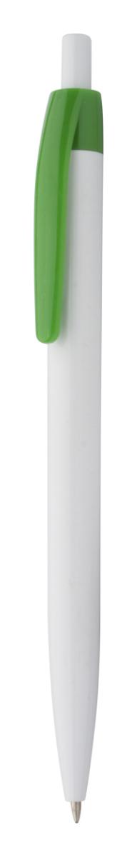 Plastové kuličkové pero s bílým tělem a barevným klipem, s modrou náplní.