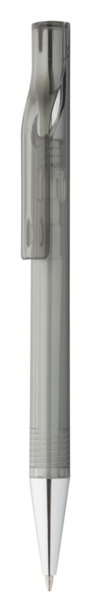 Plastové transparentní barevné kuličkové pero s chromovou špičkou a modrou náplní.