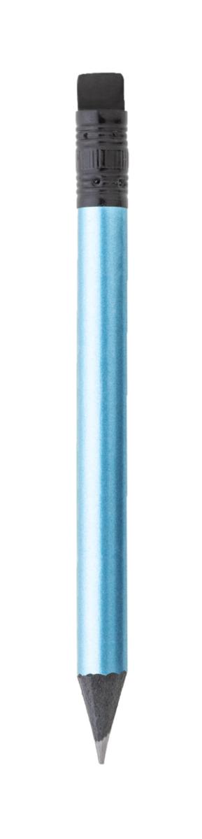 Černá dřevěná mini tužka v metalickém provedení s černou gumou. Ořezaná, třída HB.