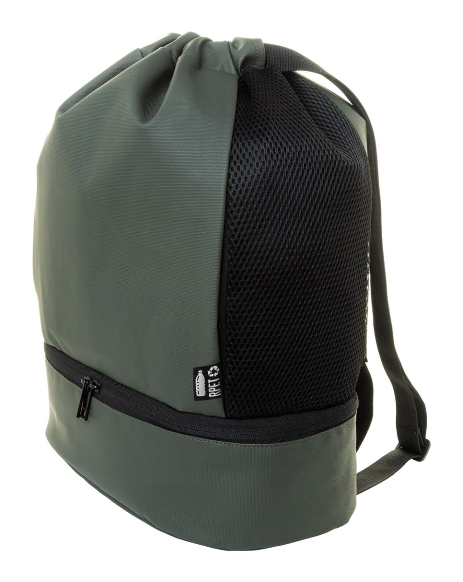 Prémiový vak se stahovací šňůrkou z RPET s přihrádkou na boty na zip, bočními vložkami ze síťoviny a širokými popruhy. Polyester 600D RPET potažený PU s výrazným štítkem RPET.